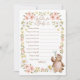 Prepare-se para celebrar a doce chegada do seu pequeno com o nosso lindo urso de madeira tricotado e os desejos florais de animais para o cartão de chá de fraldas! apresenta um design de urso de madeira encantador, lindamente emparelhado com os nossos delicados florais de aquarela pintados à mão. O design captura o calor do tema da floresta com o adorável urso tricotado, abelha e pássaro azul com uma estrutura floral macia. É um jogo divertido para jogar na sua festa de chá de fraldas. Trabalho de arte de aquarela pintada à mão e design por © Moodthology Papery.