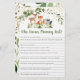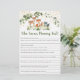 Esses adoráveis que conhecem as melhores cartas de Mamãe são uma atividade de Chá de fraldas divertida. Simplesmente passe-os durante o Chá de fraldas onde os convidados se divertirão a responder a perguntas sobre a mãe a ser! A pessoa com as vitórias mais corretas! A design apresenta animais lindos de floresta com acentos florais de verde e folha de ouro.