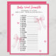 Word Scramble Baby Shower Game Pink Bow Ribbon
