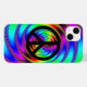 Um fractal brilhante do arco-íris com padrão espiral repetido. Arte fractal colorida é um presente único. Arte fractal colorida com arco-íris colorida com um símbolo negro de paz. Você pode transferir o trabalho de arte digital e o sinal de paz para outro presente para criar seu próprio design. Adicione texto personalizado para criar seu próprio caso.