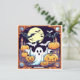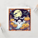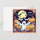 Fantástico Dia das Bruxas assustador. Uma lua grande com fantasmas amigos, abóboras e morcegos.