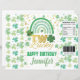 Tema: Dia de São Patrício Rainbow Shamrock. Ocasiões: Festa de aniversário infantil. Estilo: Bonito, Elegante, Boho. Cores: Verde, Dourado, Branco. Gráficos: Arco-Íris, Aquarela, Falso Dourado.