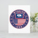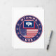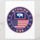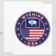 Crachá de Wyoming com bandeira de Wyoming e bandeira de cores dos EUA, forma arredondada. Emblema de Wyoming. Selo de Wyoming. Coleção dos Estados Unidos.