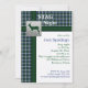 Este xadrez rústico azul, verde e branco, com convite de veado prateado é totalmente personalizável.
