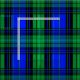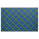Tecido azul escocês, preto e verde xadrez. Diagonal