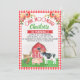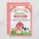Procurando um convite de aniversário para uma garotinha? Este design bonito tem quatro animais de fazenda, um porco, cabra, vaca e galinha. Adicionei dois arranjos florais no topo do design. A borda é uma imagem de padrão de xadrez vermelha e branca. Para um design semelhante com uma fronteira de madeira, visite a loja. O quintal vermelho da xadrez ou o convite de aniversário temático da fazenda desta garota está pronto para ser personalizado.