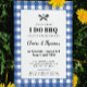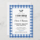 Celebre o casal recentemente engajado com este convite de festas do I Do que apresenta uma alegre tomada do padrão clássico do cobertor de piquenique de xadrez gingham e um detalhe charmoso de ferramentas de grelhamento com coração. Personalize o texto para se adequar aos detalhes da sua parte com caixas de texto flexíveis ou mude ainda mais sobre o design, como a cor azul para uma de suas opções, usando a opção personalizar mais.