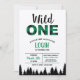 Um selvagem! Este convite para xadrez impresso frente e verso é perfeito para uma primeira festa de aniversário. Inclui padrão de verificação de búfalos verde e preto e silhueta de árvore. Ideal para uma festa no outono ou no inverno, um lenhador, uma aventura ou um tema ao ar livre ou uma cabana de vestimenta flanela.