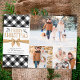 Um cartão de saudação de colagem de fotos de Natal acessível impresso em papel semisglosso leve de 4,5 x 5,6 polegadas, em vez de estoque de cartolina com design de verificação de búfalos preto e branco, intitulado MERRY CHRISTMAS em uma fonte de papel kraft castanho com folhagem de inverno desenhada à mão e amarrado de forma elegante com um arco marrom ouro com 3 fotos. Ideal para orçamentos conservadores e/ou entrega manual a familiares e amigos. ADICIONE ENVELOPES na página de ordenação, se desejar. ASSISTÊNCIA: para obter ajuda com a modificação ou personalização do design, transferindo o design para outro estilo de placa ou outro produto ou, se você quiser coordenar itens, entre em contato com o designer ANTES DE ENCOMENDAR através da guia MENSAGEM de Bate-papo do Zazzle abaixo ou envie um e-mail para makeitaboutyoustore@gmail.com.
