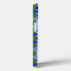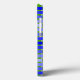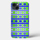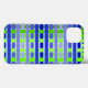 Esta capa de telefone tem um design geométrico de linhas em tons azuis e verdes tecidos para fazer uma xadrez.