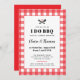Celebrar o casal engajado com este convite de festas I Do que apresenta uma alegre tomada no padrão clássico, vermelho, do cobertor de piquenique de xadrez gingham e um pequeno detalhe das ferramentas de grelhamento com coração. Personalize o texto para se adequar aos detalhes do seu partido com caixas de texto flexíveis ou mude ainda mais sobre o design usando o link personalizar.