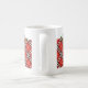 Esta caneca de café cerâmica bonita é decorada com um tartan/xadrez digitais vermelhos, brancos e pretos e coberta com azevinho festivo, desenhado mão e as bagas vermelhas.