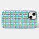 Esta capa de telefone tem uma design de Arte Deco de uma xadrez feita de dois tons de turquesa, dois tons de roxo e dois tons de verde.