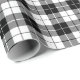 Um papel de embalagem projetado com um padrão de xadrez preto e branco. Personalize o fundo branco entre outras opções.