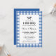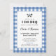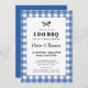 Celebrar o casal engajado com este convite de festas I Do que apresenta uma alegre tomada no padrão clássico, azul, do cobertor de piquenique de xadrez gingham e um pequeno detalhe das ferramentas de grelhamento com coração. Personalize o texto para se adequar aos detalhes do seu partido com caixas de texto flexíveis ou mude ainda mais sobre o design usando o link personalizar.