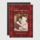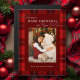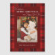 Enrole sua querida foto de feriado familiar neste adorável padrão de xadrez de Natal vermelho clássico e tradicional com borda vermelha escura, modelo de foto de retrato de solteiro e campos de texto editáveis.