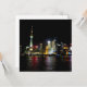 Xangai à noite ou à noite. A foto foi tirada no "Bund" numa noite quente. Mostra a Oriental Pearl Tower e os arranha-céus na vizinhança. Xangai é a maior cidade de Chinas e uma das maiores do mundo. A cidade floresceu nas últimas duas décadas devido ao desejo da China de vê-la tornar-se um centro internacional de finanças e cultura. A cidade tem uma mistura fantástica de história e modernidade. A modernidade da cidade é mais visível quando a noite cai no rio Huangpu, onde os visitantes podem ver uma exibição de luz espantosa e desfrutar de vistas de excelente dos arranha-céus da cidade, como se vê na foto.