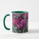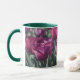 Esta bonito caneca floral apresenta a minha fotografia original de flores de tulipa púrpura, processada com uma técnica de aquarela para um estilo ilustrado e pareado. Ele tem um dentro verde colorido e na alça, que pode ser alterado se desejado. Estas são canecas de 11 onças, do tamanho perfeito para o café ou chá da sua casa - ou até chocolate quente! Ele daria um ótimo presente e você poderia colocar pacotes de café, sacos de chá ou chocolate quente dentro. Uma outra ideia de presente é colocar uma pequena planta nela para torná-la mais especial para o seu amado.