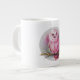 Uma coruja rosa maravilhosa empoleirada num galho com um fundo colorido impressionante.