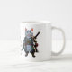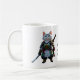 Caneca de café com gato samurai impresso no rosto da xícara. O gatinho Samurai que parece lindo e majestoso e poderoso cumprimentando a primeira coisa pela manhã.
