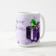 Aproveite seu café matinal durante o feriado com esta festiva caneca de café de Natal roxa. Design de caneca de café apresenta um presente de Natal roxo vibrante adorado com bagas ocas e flocos de neve caídos contra um elegante pergaminho e deixa o fundo com o ditado "Minha xícara de alegria". Itens adicionais de presentes e feriados disponíveis com este design também.