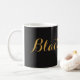 É realmente manhã com um cheio de caneca de café preto com creme Dourado.