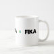 Fika, a palavra para "tomar uma pausa de café" em sueco, impressa num copo junto com a bandeira sueca.
