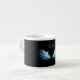 Xícara De Espresso Asas Anjos Azuis Brilhantes em fundo preto