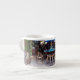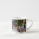 Nesta Taça Espresso - Casual, relaxado, andando ao redor de bicicletas, estas são algumas das coisas que compõem o confortável estilo de vida ilustrado nesta fotografia original de ZoeSPEAK, de uma bicicleta azul aqua inclinada contra um posto em frente a um bar a céu aberto em Key West, na Flórida. Há um arbusto verde folheado numa banheira, debaixo de um aviso que corresponde à cor da bicicleta. O interior escuro do lugar está cheio de fezes bares de madeira, e guarda-chuvas azul de aqua e cobalto sobre as mesas. Um bar azul aqua na frente completa a foto colorida.