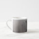Uma xícara de café com uma foto de bombeiro caminhando pela fumaça e pela água.