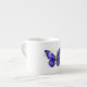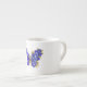 Borboleta de flores cinza, azul, safira, espumante com asa decorada com flores preciosos azuis com folhas de ouro sobre fundo branco.