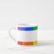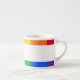 Caneca de café expresso com listras de cores de arco-íris.