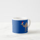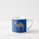 Esta caneca espresso fantástica apresenta uma imagem de arte digital de um Camelo Dromedário de cor marrom e bonito com pestanas longas e uma corcunda solteiro nas costas. O camelo está vestido para celebrar o Natal com um chapéu de Papai Noel vermelho e branco na cabeça. O camelo aparece na Bíblia e é um símbolo tradicional do Natal.