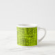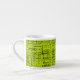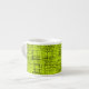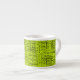 Esta xícara espresso apresenta um padrão de abstrato num fundo chartreso.