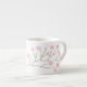 Uma caneca espresso com um original Mango Moon Studio ilustrando as delicadas flores de cereja rosa em um galho.