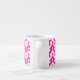 Uma caneca de café Espresso com um padrão decorativo em forma de cevão, cor-de-rosa-doce e branca. Parte da coleção Posh & Painterly 'Candy Floss'.