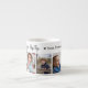 Uma xícara de café espresso, com fotos, amamos você, tipografia do PopPop e nomes de netos. Faz um presente especial para o seu avô favorito.