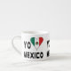 A caneca de café espresso usa uma bandeira mexicana em forma de coração em vez da palavra AMOR ou AMO. O design lê-se EU AMO MÉXICO e é exibido em três lados. A bandeira é verde, branca e vermelha com uma águia no centro. Divertido no Cinco de Mayo. Ótimo presente de casa nova.