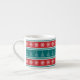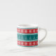 Ilustração feliz de Natal com árvore de Natal e decoração de flocos de neve em fundo vermelho, branco, azul e turquesa listrado