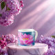 Xícara De Espresso Flores de Lotus Rosa Flutuando em Água Azul Crista