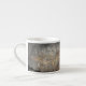 O desenho abstrato original desta Taça Espresso foi feito a partir de uma fotografia original do HomeWare de uma tartaruga de gopher. A design é uma vista de perto da carapaça de tartaruga. O padrão linear da concha foi acentuado, mostrado pelas linhas pretas rasas sobre cores quase metálicas de cinza de prata e ouro. As partes sobrepostas da casca, sobre a sombra preta, fazem com que pareça a armadura, que é para a tartaruga. Estas cores contemporâneas, tons de terra, criam um design moderno da natureza, chic, naturalmente. Há texto no centro da caneca que diz "Cafeína é mais rápida." Este é definido para personalizar, usar como está ou excluir se preferir.