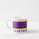 Espresso Cup 6oz. branco com círculos concêntricos roxos e dourados design com "CENTRO DO UNIVERSO" e "HOLLYWOOD, CALIFÓRNIA" no fundo. Com o Selo Excelente da Califórnia no centro. Esta design é um grito para a cidade incomparável, Hollywood, Califórnia.