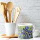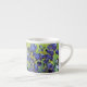 Um copo de espresso de arte fino com a pintura poste-impressionista, Irises (1889), de Vincent van Gogh (1853-1890). Iris azul violeta no jardim, que foi influenciada pela arte japonesa.