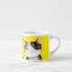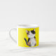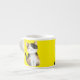 Espresso-Tasse, kleine, gelbe und weiße Tasse mit einer größeren und einer kleineren Katze. Circa 175ml.