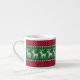 É um suéter tecido num impressão! Um padrão ricamente detalhado, com renas brancas a flutuar sobre um campo de verde cercado por um vermelho de Natal com embelezamentos brancos.