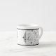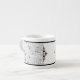 Xícara de espresso branco com a imagem, de ambos os lados, de um mapa preto e branco de Paris, França com bordas pretas e detalhes do trabalho de rolagem preto. Ver pote de doces, frasco, lança, placa de papel, bule e portas copos correspondentes. Veja toda a coleção de Canutos na COMIDA/BEV | Seção pratos.