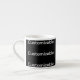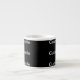 Elevem sua experiência de expresso com nossa Copa Espresso Personalizável Preta, projetada para aqueles que apreciam as coisas mais bonitas da vida. Esta xícara elegante e na moda é o companheiro perfeito para o seu ritual espresso diário, oferecendo um toque de elegância com cada gole. Personalize-o com o seu nome, um ditado favorito, ou uma design única para tornar os seus momentos expressos verdadeiramente o seu. Feito de cerâmica de alta qualidade, esta xícara não só parece sofisticada como também se sente bem na sua mão. Faça com que cada espresso quebre um pouco mais de especial com uma xícara de espresso preto personalizada que é tão única quanto seu gosto.