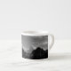 Foto em preto e branco de uma seção da Faixa de Tatoosh, no Parque Nacional do Monte Rainier, com grupos de nuvens flutuando atrás dela. A posição do sol está atrás das montanhas, destaca seções de nuvens e mantém a cordilheira na sombra. Manchas de neve de verão ainda se agarram à pedra exposta das montanhas. Imagem Copyright ©2023 Kimberly J Tilley. zazzle.com/store/developingnature