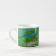 Espresso Cup, com a pintura a óleo de Claude Monet de uma ponte japonesa e flores. Lindos lírios-d'água e ponte inspirados no jardim e lagoa do artista em Giverny. Um presente de Monet excelente para fãs do impressionismo e da arte francesa.