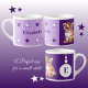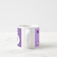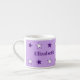 Caneca/xícara de criança / para crianças. "Espresso tamanho" caneca - tamanho perfeito para uma criança pequena. Neste copo de bebendo há um tigre fofo, com estrelas. Adicione um nome e inicial. Roxo e branco.
